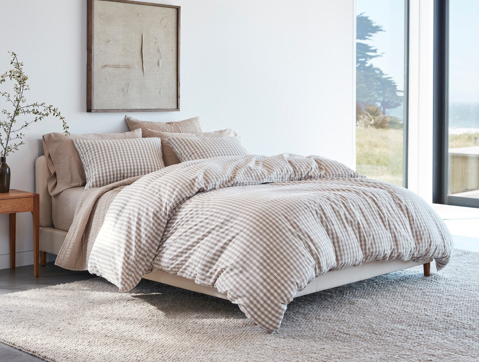 Questo piumino a quadri alterna motivi e texture per creare la nostra personale interpretazione tricolore del vichy. Abbiamo ispirato l'architettura ecologica della comunità costiera di Sea Ranch in una trama traspirante e tinta in filo, con una mano morbida e stropicciata, simile alle nostre lenzuola più vendute in Percalle™️ stropicciato.